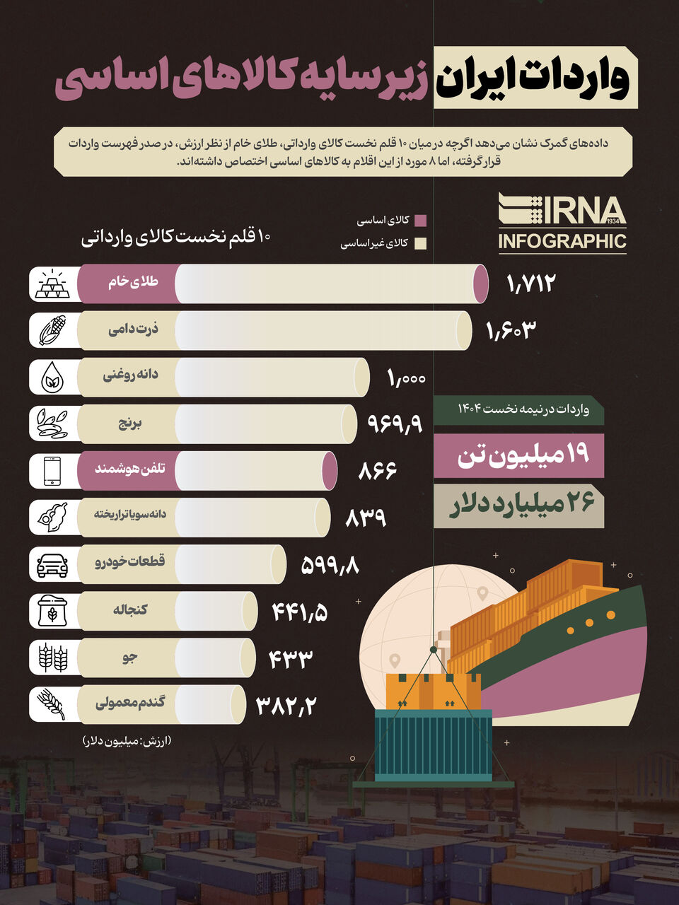 به گزارش قم نما به نقل از ایرنا ، داده های گمرک نشان می دهد اکر چه میان ۱۰ قلم نخست کالای وارداتی، طلای خام از نظر ارزش، در صدر هرست واردات قرار گرفته، اما هشت مورد از این اقلام به کالاهای اساسی اختصاص داشته اند.